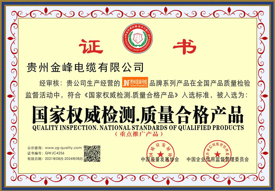 • 國(guó)家權(quán)威檢測(cè).質(zhì)量合格產(chǎn)品證書