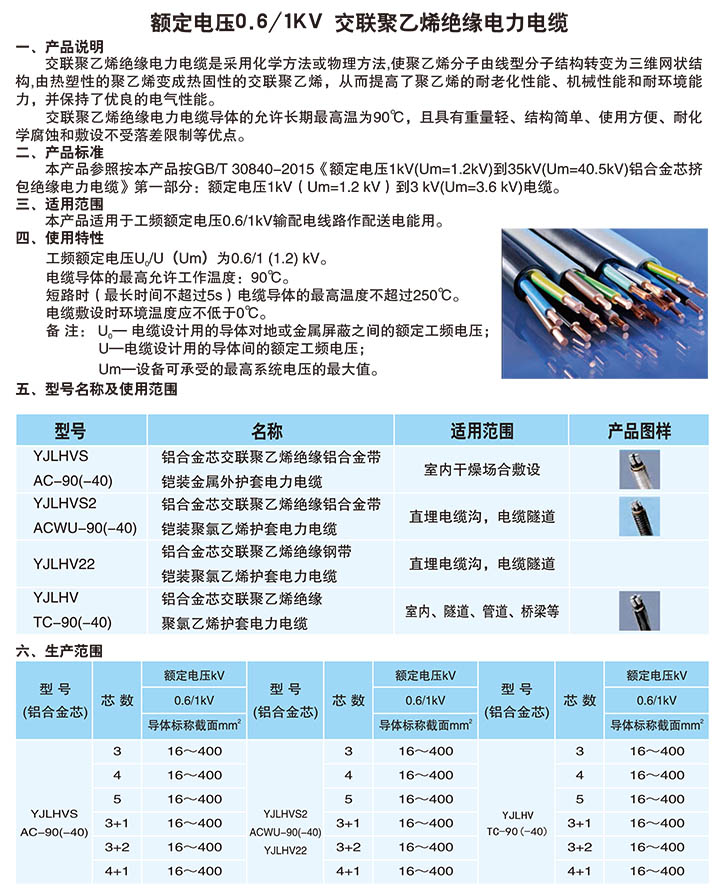 • 額定電壓0.6/1k V 交聯聚乙烯絕緣電力電纜